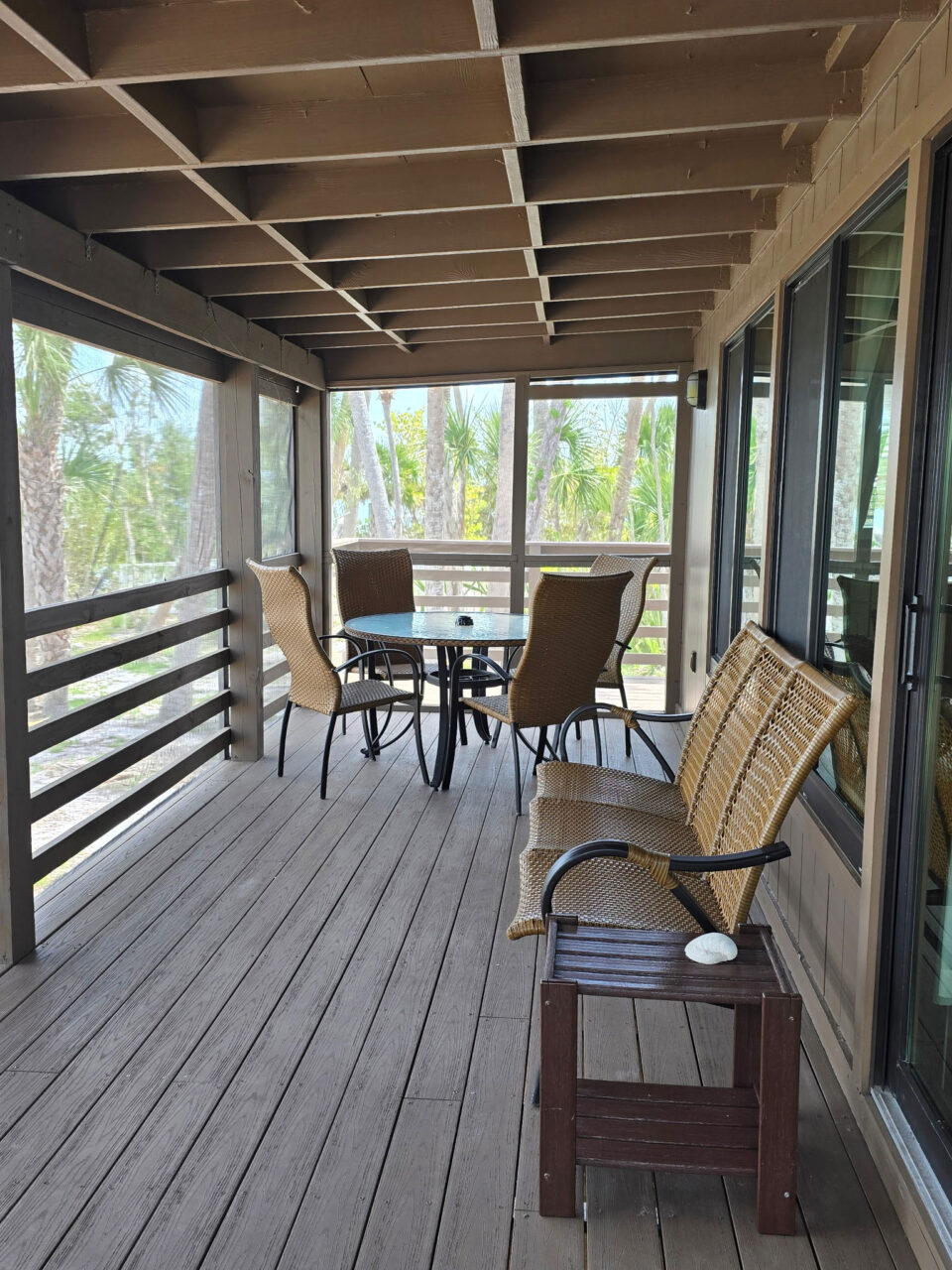 Cabbage Patch Cottage is an “old time favorite” often requested in advance by our repeat guests. The Cabbage Patch is a Cedar walled two bedroom, two bathroom air conditioned cottage with a king bed and a queen bed, basic TV, fully equipped and furnished kitchen located on the water with a private dock, screened front porch and a wrap around porch facing a gorgeous view of the Pine Island Sound.