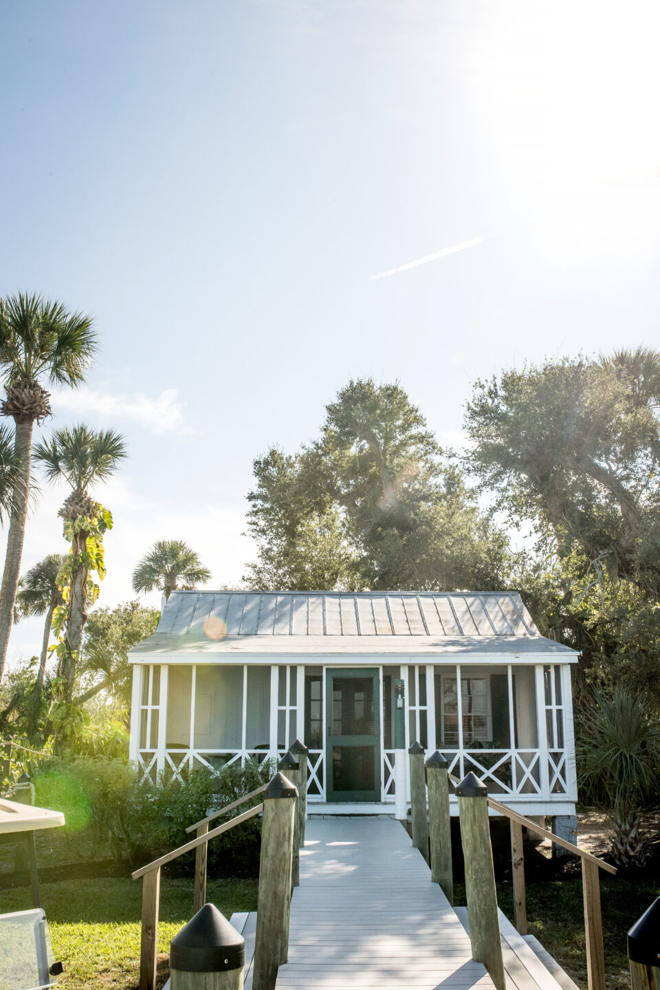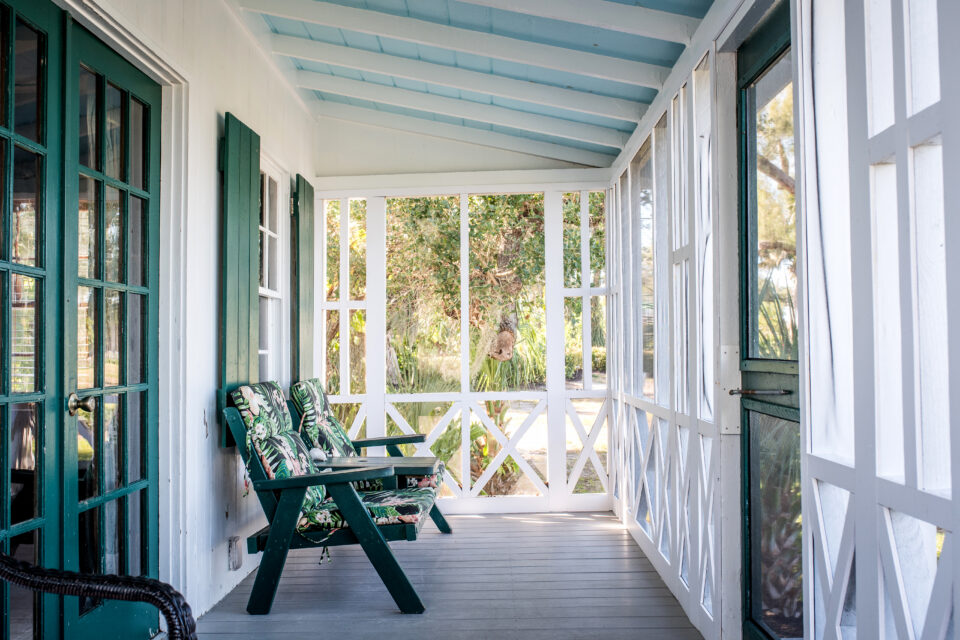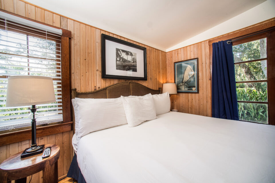 The Dollhouse Cottage also referred to as our “honeymoon suite” and one of our most popular cottages. The Dollhouse was originally built in the early 1930s for the Rinehart children as a playhouse. The Dollhouse is a one bedroom air conditioned cottage with a king bed, basic TV, small refrigerator, coffee maker and a living room. The cottage is situated on the water with a private dock, screened front porch and breath taking view of Pine Island Sound.
