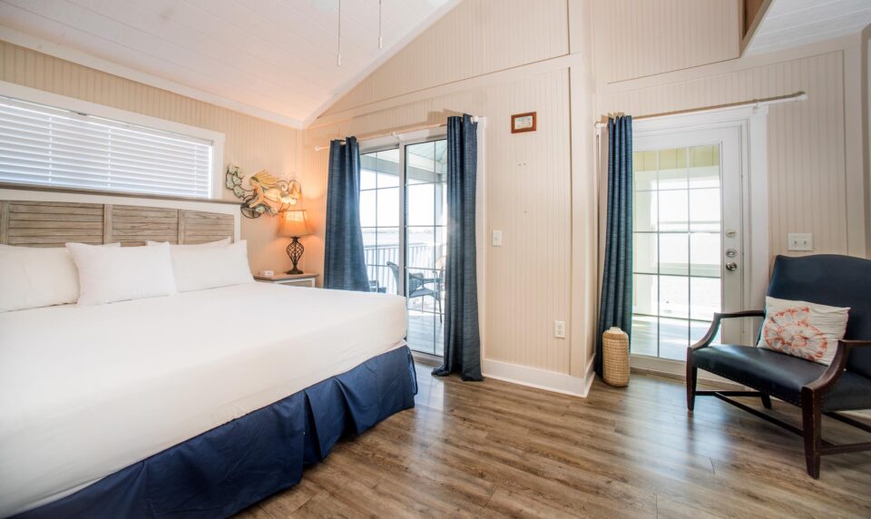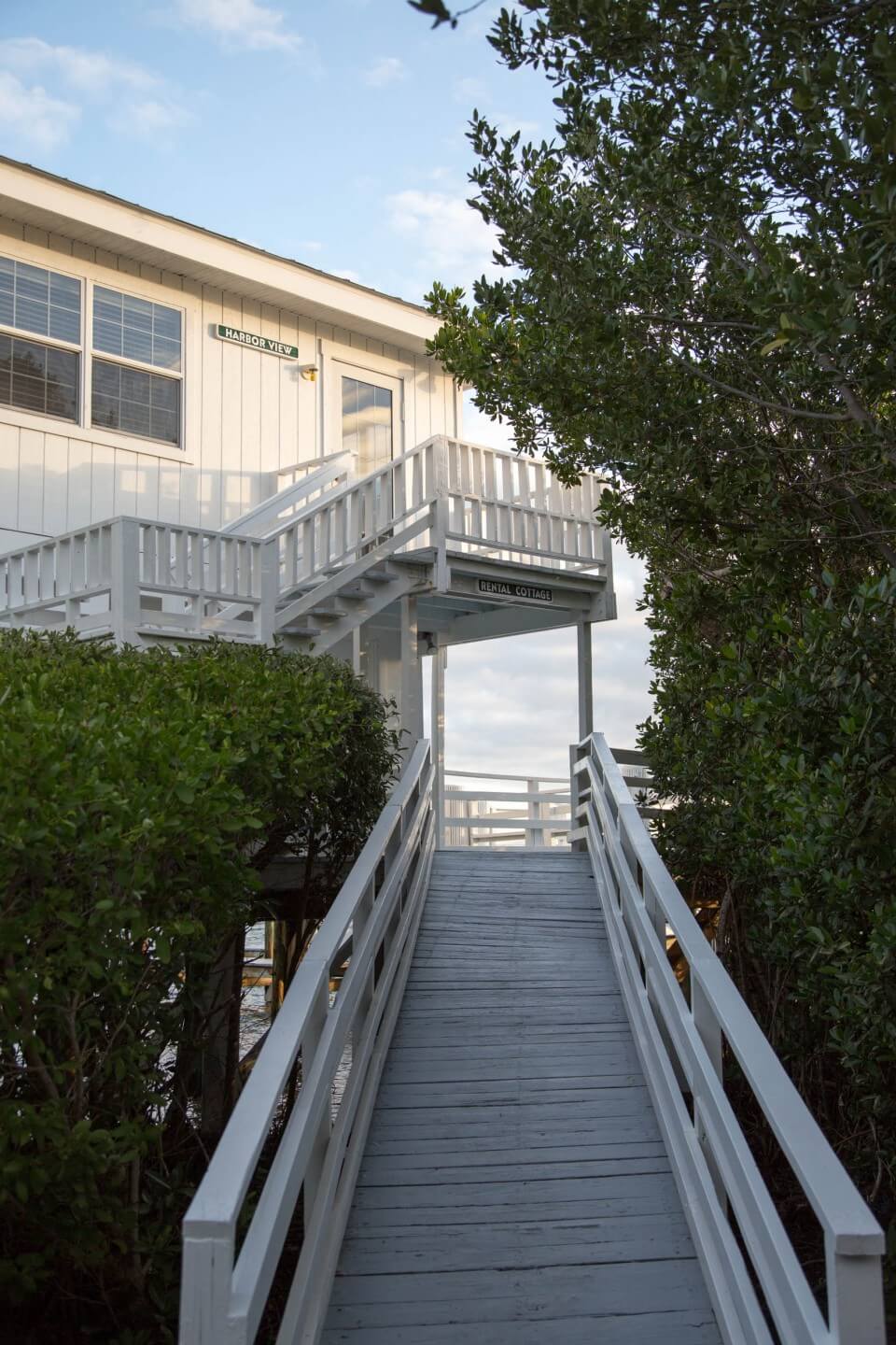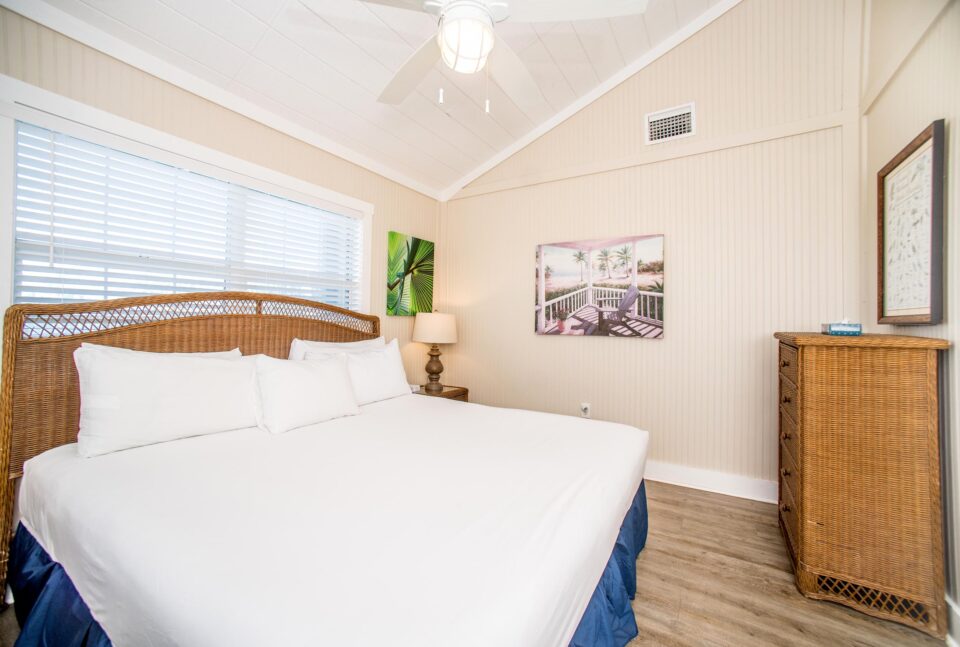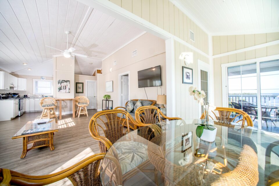 The Harborview Cottage is a four bedroom three bathroom stilt house. The main living area is upstairs and has two bedrooms with king size beds in each and there are two full bathrooms. On the lower first floor are two bedrooms with two twin beds in each that share a bathroom. With an additional television, small refrigerator and sitting area, this cottage is ideal for families with teenagers. There is basic TV, a fully equipped kitchen, on the water with a dock, sundeck, an open air porch and a screened porch. This spacious cottage remains one of Cabbage Key’s more popular cottages throughout the seasons.