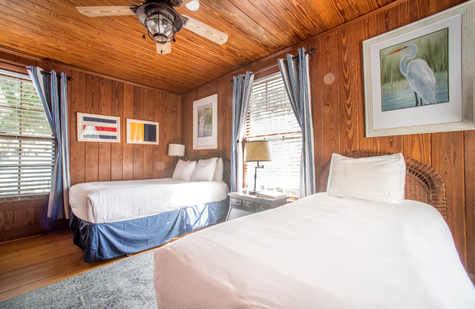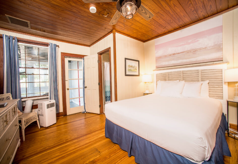 Tucked within the Historic Cabbage Key Inn, you’ll find six charming, and newly remodeled rooms, all of which still have the original, beautiful hardwood floors. These rooms are located down the hallways on each side of the Inn. Each room is unique, intimate and tastefully decorated in the old Florida style. All rooms are non-smoking, have air-conditioning, private baths, televisions and convenient access to our restaurant and lounge. These rooms do not have phones or refrigerators. There is Wi-Fi available in the Inn.